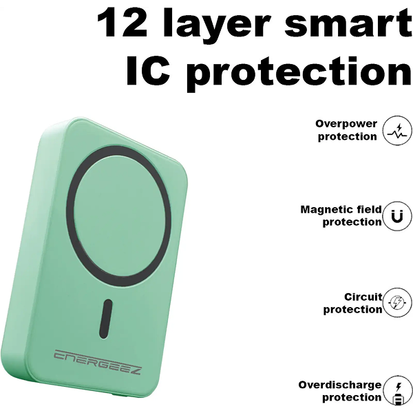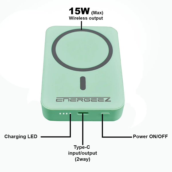 Energeez Axo EZ_10K power bank combines cutting-edge performance with a sleek, professional design, offering an exceptional charging solution for modern professionals. Key features include: 1. High-Capacity Battery: Equipped with a 10,000mAh Lithium Polymer battery, providing reliable and extended power for multiple device charges. 2. Fast Charging: Type-C Port: Supports up to 20W output for rapid charging of compatible devices, with dual input/output functionality for enhanced versatility. 3. Wireless Charging: Delivers up to 15W of wireless power, ensuring seamless charging for Qi-enabled devices. 4. Compact and Portable Design: Dimensions: 95mm x 65mm x 18mm, engineered for lightweight portability without compromising functionality. 5. Smart Features: LED indicators for real-time battery and charging status. Dedicated power button for efficient operation and energy management. 6. Durability and Elegance: Constructed with a robust, minimalistic design that complements a professional lifestyle while ensuring long-lasting reliability. Ideal for business, travel, or daily use, Axo EZ_10K provides a dependable and efficient power source for professionals seeking convenience and performance in one device.