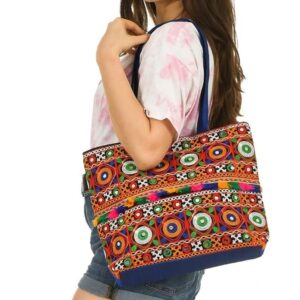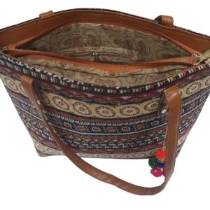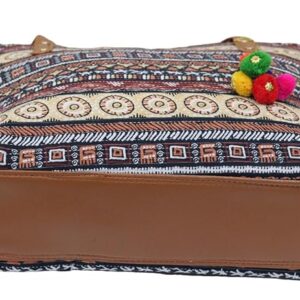 Womens Girls Traditional Ikkat Tote Handbag With Tassels, Women Shoulder Bag & Handbag -Extra Spacious