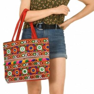 Cotton Traditional Ethnic Rajasthani Jaipuri Embroidered Handbag/Sholder Bag/Hand Bags for Girls Women(Red)